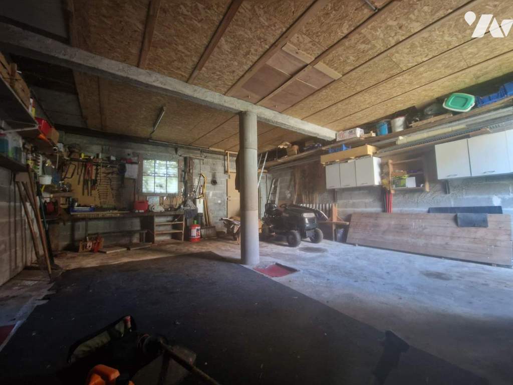 En revanche de l'autre côté de la rue, vous pourrez avoir la chance de posséder un double garage haut de plafond où vous pourrez stationner des véhicules hauts de type camping-cars, à l'autre bout du terrain se trouve un autre garage avec de petites dépendances, de plus au-dessus de chacun des garages se trouvent un grenier.