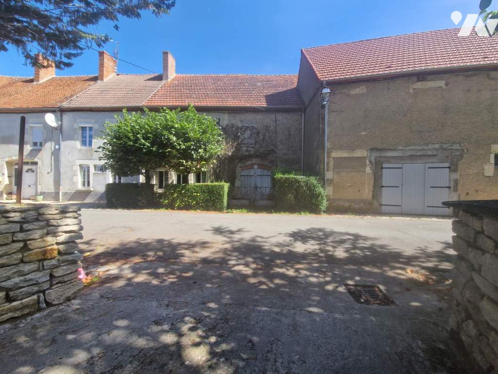LIVRY, Maison d'habitation - Dans petite commune nivernaise, maison de bourg mitoyenne des deux côtés, comprenant cuisine, séjour, 1 chambre, dégagement, salle d'eau, WC. A l'étage : 1 chambre, 1 grenier. Un garage attenant à la maison, une cave, deux autres garages dont un double, terrain , 2 puits , cave, cabanon.